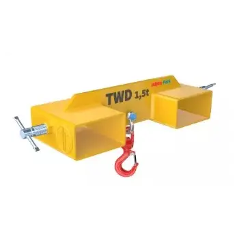 Az egyik legelterjedtebb kivitel a villára húzható, forgó horoggal ellátott targoncavilla adapter.